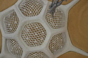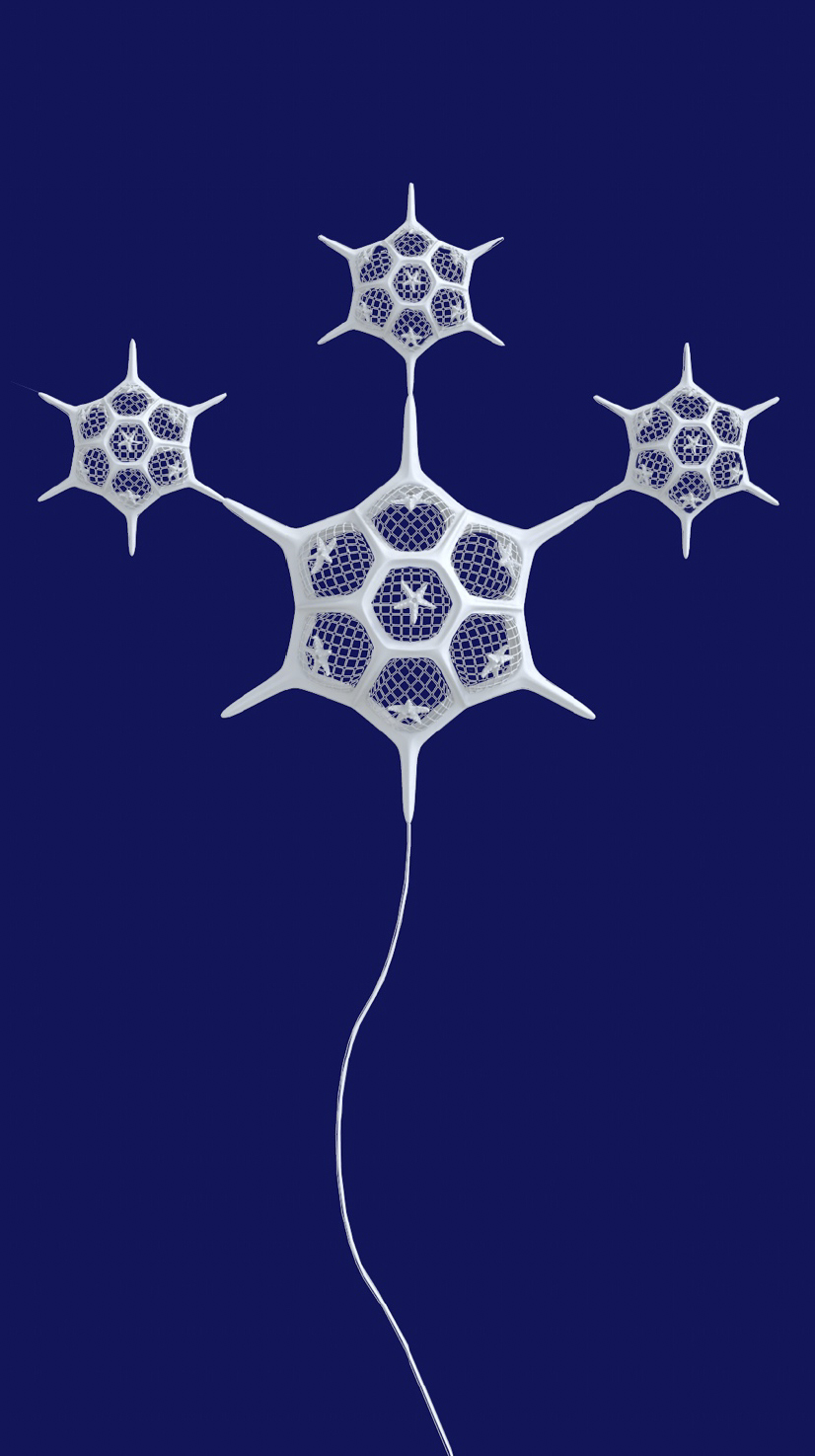 Biorock, is a technique that ‘grows’ calcium carbonate when lightly electrified metal with a negative charge using an anodic cathodic process self-repairing structure. A series of experiments can be conducted on how the nascent coral gametes and fragments within the field of negative electricity the coral “Ark” provides and outside of the” Ark”. The design of the Ark with a larger central pod and three branching pods is, based on the natural form of a photosynthesizing plankton with a flat bottom and flanges which offer maximum stability, the shape while maintaining a lot of negative space for water to flow through. The radiating design also allows for lower amounts of current in the three radiating smaller Pods and a slower growth rate for the Biorock and more suited to natural larval settlement. (See attached paper of a Biorock coral Ark in Jamaica where this is the case) Theoretically, the coral gametes settled on the ceramic substrates will have higher mortality and growth rates if this is the case then Biorock Structures would be excellent for coral nurseries supporting larval propagation